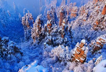 張家界三千奇峰、八百秀水,用“雄、奇、險、秀、幽”5字來概括,早已得到大眾的公認(rèn)。張家界的山水,稱得上是風(fēng)景山水的經(jīng)典;游張家界,則成為人生的宿愿和幸事。飽覽張家界,可謂四時皆宜:春天,是大地充滿靈氣的季節(jié),張家界此時的山水,充滿著生氣,充滿著向往,它的每一座山峰,每一道水溝,都舉著搖曳多姿的花朵,是表示對游人的歡迎,更是表達(dá)一種生命的意境;夏天,是空氣膨脹欲望的季節(jié),張家界此時的山水,充滿著遐想,充滿著誘惑,它的一草一木,一枝一葉,都滴瀉著生命的翠綠,裝飾著每一座山峰,蘊含著人生的幻想和追求;秋天,是星月喜慶豐收的季節(jié),張家界此時的山水,一樣地走向深厚,一樣地寫滿沉穩(wěn),它的山山嶺嶺,它的溝溝壑壑,在翠綠的底色中亮出火一樣的紅葉,抒寫著熱情,歌吟著成熟與奔放;冬天,是風(fēng)花雪月般詩意的季節(jié),張家界此時的山水,冷峻中透著溫情,蒼茫里飽含著魄力,它的一座座石峰,它的一棵棵巖松,都是一個個冰清玉潔的世界,它們都玉樹臨風(fēng)般燃燒著,引發(fā)著游客的激情,而那些冰雪覆蓋的小溪,流水在動情地吟唱,就像有情人心中的歌吟,最易撩動愛人的衷腸。我愛張家界四季的景色,但我更愛張家界的冬天,我愛在冬天里與張家界的山水對話,我愛在冬天里到張家界的山水間去暢游,去作一種思想的飛翔! 張家界的冬天并不寒冷,這主要是因為四周多高山,這里的冬季多為晴朗天氣,故區(qū)域小氣候較為溫暖,暢游張家界無須冒嚴(yán)寒之苦,又可避開歷酷暑之難。即使是雨雪天氣,因為景區(qū)是一個高出的整體平臺,小地形則是一塊盆地,所有的景觀就好比一個放大的盆景,所以在游歷觀賞的行程中,并無寒氣逼人、冷酷加身的感覺。一旦遇上陰雨天氣,景區(qū)因海拔較高,山地氣候又特別明顯,放眼望去,枝枝葉葉便都成了水晶般的世界,精靈奇巧的霧凇千姿百態(tài),笨拙憨厚的灌木清純天成。若是有雪降臨,不管大小,山上立即便會是一個白雪皚皚的世界,恰似翡翠盤中堆砌著白玉,那些巖壁上的枯枝古樹,此時又煥發(fā)青春,讓人不由得想起兩句古詩:“春來苔作葉,冬至雪為花。”我曾陪《羊城晚報》的一位朋友冬游張家界,她興致極高地滿山里跑,她說:“此山此景,人生頭一回遭遇,可望而不可求,遺憾的是沒有看到雪境里的張家界。”真是老天作美。第二天,我們在山上走著走著,天空便飄起了雪花,頃刻之間,便是一個雪花飛舞的世界,大地上石峰上樹上身上的雪花,就像火苗一樣點燃了朋友的激情,她情不自禁地面對著山野吟哦起來——親切而新鮮的雪花,落下來,在夢幻深處,在心靈深處,就像飄落的雪白的火焰,溫暖我人生的境界點燃我生命的激情……雪花落下來,落滿大地、石峰和樹冠豐腴著山峰、溝壑和想象為詩意和行程增加了厚度,雪清新,溫暖,純潔,冷冽它是自然的語言,火辣辣的語氣中帶著熱情,還有看不見面的堅硬和銳利…… 作為一個南方的朋友,見到如此美妙的雪的世界,她的激動和驚喜,完全是我意料中的事;而讓我驚奇的是從不作詩的她,竟然意隨興致的吟唱出如此語意雙佳的詩作來。 雪中游張家界,你無需為安危著想,景區(qū)的工作人員,無論何時何地,都是游客的保護(hù)神。在我的記憶中,深深地記得2000年正月初一的那天,我與攝影界的朋友游張家界,每到一處,各種接待工作都井然有序,清路工人硬是在一尺余厚的積雪上,清出了通往每一個景區(qū)景點的道路,每一處易出事故的地方,都有工作人員守護(hù)。在天子山頂,我們遇到一群臺灣游客,他們高興地指著冰天雪地的景區(qū)景點說:“張家界山美水美人更美,張家界的雪景則是美上加美,每一座石峰都冰清玉潔,每一棵樹都玉樹臨風(fēng),真是一個美妙的雪世界啊!” 張家界的森林覆蓋率達(dá)99.7%以上,植物科目種類比整個歐洲大地還多。因此,冬游張家界,滿眼里仍然是綠色的世界,這就是它與北方景觀的區(qū)別。即使是冰天雪地,那臨風(fēng)玉樹,那挺立的石峰,透過冰雪,仍然會展現(xiàn)出綠色,就像一個翡翠的世界。置身于這樣的景致里,使你的感覺不寒不躁,如早春二月,心如春芽。這時,你心隨景移,興隨景起,你會由衷地感嘆:“這世界多么美妙,真是個賞雪景的勝地。”? 冬天去張家界賞雪景,游客不用自己為交通食宿多操心。如今去張家界,公路、鐵路、航路三位一體,十分方便,市內(nèi)去景區(qū)也已修成了高等級公路,返往暢通無阻。旅游通行是景區(qū)旅游,市內(nèi)住宿,各類檔次的賓館任由選擇。盡管景區(qū)山高溝深,路陡程長,但游客無需為勞累擔(dān)憂,景區(qū)內(nèi)已建成兩條上山索道和一條上山升降梯,上黃石寨、天子山、袁家界等核心景區(qū),只是一瞬間的事情。即使在山上走累了,隨處可以叫一架滑竿,轎夫都是些訓(xùn)練有素的精壯青年,他們可以抬著你慢悠悠地一邊瀏覽著雪中的景致,還會一邊為你講些民俗或是一些山中的故事。他們會為你噓寒問暖,寧肯自己多吃些苦,多受些累,他們也會做到讓游客舒心滿意。這時,你還不心曠神怡么?你渾身會涌起一股股溫暖的感覺來。 朋友,下雪時,到張家界觀雪去,那是一場雪白的火焰,將會點燃你生命的激情和幻想,那些個性的石頭和倔強的樹,那里的民俗風(fēng)情和鄉(xiāng)民情操,將會成為你生命中人性修養(yǎng)的參照。
